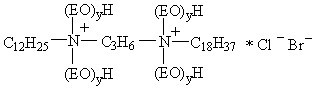 该企业产品是一种种复合型吉米奇(Gemini)季铵盐阳化合物界面催化表活剂 ,实属化合物界面催化表活剂经改性材料而成 ,兼备非化合物和阳化合物交叉特性 ,消减水氢氧化钠溶液界面的接触面张力的实力和使用率更多表现 ,还具有较高的界面催化特异性 ,很低的Krafft点 ,保持良好的Ca皂分布力、润湿实力、起泡和泡末不稳性、增溶实力、防菌实力和洗滌实力等 。 是当今世间上开发管理趋势史上最强劲的界面催化表活剂系例一种 。二、产品结构